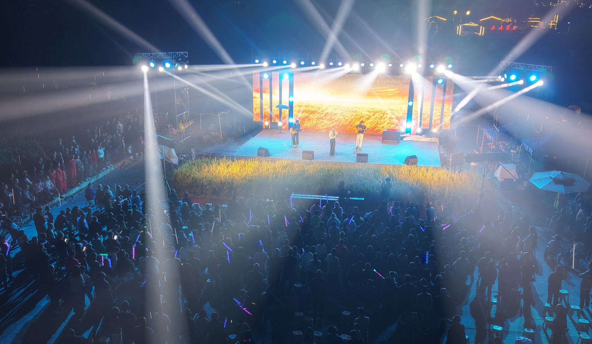 然而,音乐的狂欢并非长江村“十一”假期的全部。早在电音回响之前,村里的“十一坝坝宴”就已率先飘香。数十桌宴席在田间依次排开,村民与游客共品极具地方特色的“长江乡宴”,在美食与欢笑中感受浓浓的乡土情谊。与此同时,作为乡村文化活力的另一面,“长江杯”广场舞大赛也如火如荼地展开。各支队伍在“田园T台”上轮番登场,用饱满的热情和精彩的舞步,展现了新时代农民的精神风貌,将乡村的日常广场变成了展现文化自信的活力舞台。