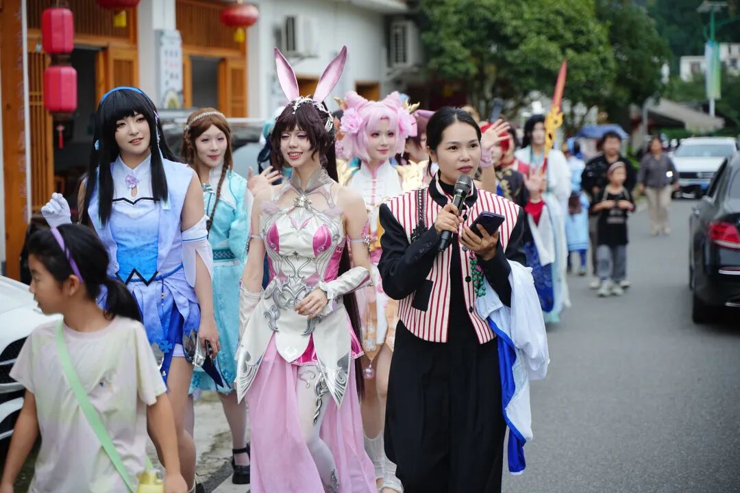 在高槐村,本次“高槐漫漫游”主题活动以“Cosplay探店+田园音乐会”的创新组合,成功实现了一次品牌宣发的突破。通过沉浸式田园音乐体验,生动展现了乡村运营与乡村振兴的丰硕成果。活动特邀多位Coser化身古今游侠与奇幻旅人,深入村落各处的咖啡馆、文创空间和非遗工坊开展趣味探店。他们以鲜明的角色设定与店主、游客展开互动,不仅为活动注入了强烈的故事感和趣味性,更通过其独特视角,凸显了高槐村多元化、年轻化的商业业态。